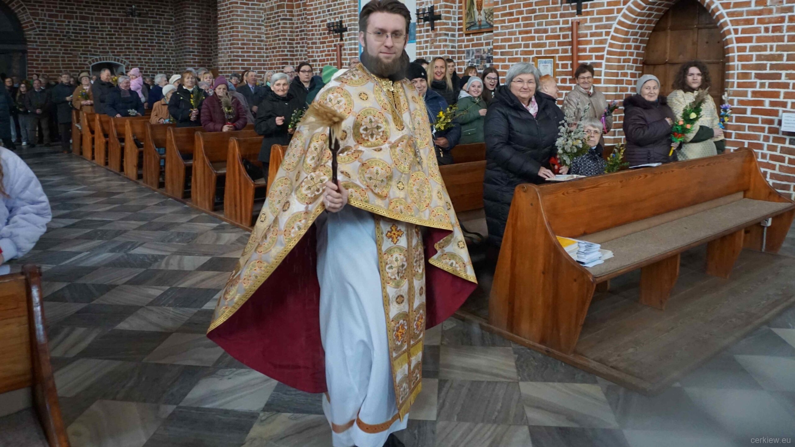 [на світлинах – віряни УГКЦ в храмі Воздвиження Чесного Хреста в Гурові Ілавецькому і власноручно виготовлені вербові букетики – «пальми»]