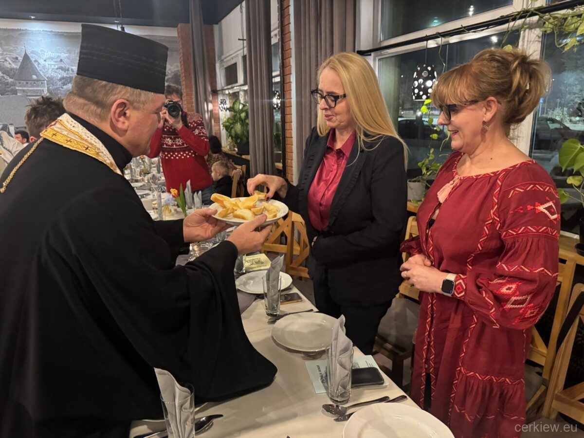 Після виступу всі разом сіли за святкові столи, де в теплій, дружній атмосфері провели приємний час та спільно співали українські народні колядки.