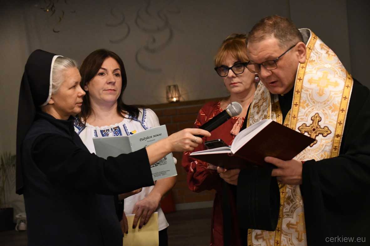 Biskup powitał również pedagogów szkoły, przy której działa międzyszkolny punkt nauczania języka ukraińskiego i religii, w tym nauczycielki języka ukraińskiego — panią Mirosławę Czeterbę-Piszczako oraz panią Sylwię Pietnoczkę, a także siostrę Damianę, która prowadzi nauczanie religii w Olsztynie.