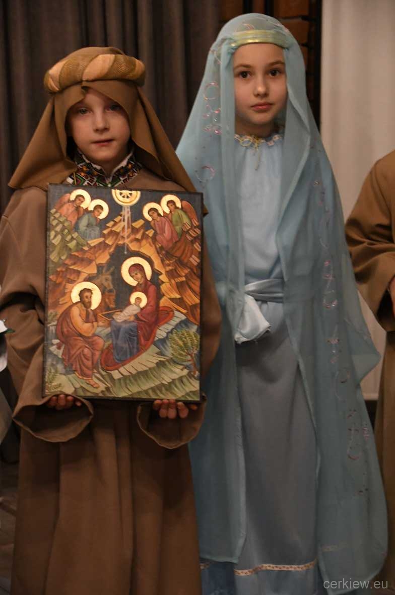 Dzieci w wieku szkolnym wraz z dziećmi z zespołu „Suzirjaczko” pod artystycznym kierownictwem pani Darii Bułki-Bził przygotowały jasełka bożonarodzeniowe oraz wykonały kilka ukraińskich kolęd. Jedną z kolęd dzieci zaśpiewały razem z rodzicami zaśpiewali rodzice oraz ks. Jan Hałuszka, olsztyński proboszcz.