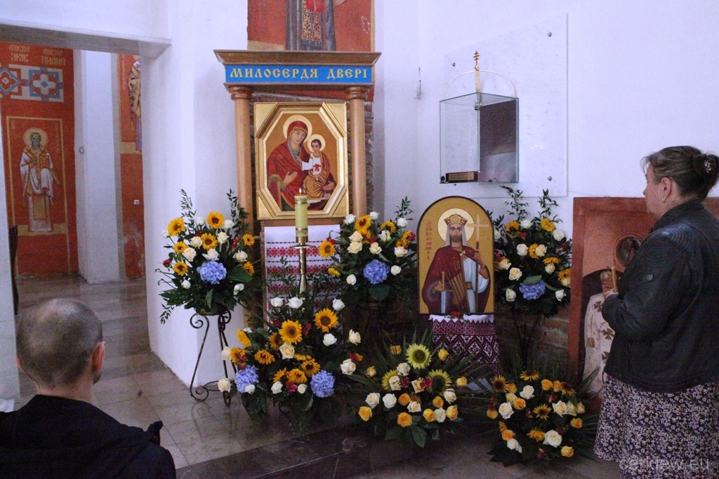 Після богослужіння в храмі віряни процесійно, разом з владиками й своїми душпастирями подалися з релікварієм на майдан під пам’ятник св. Володимиру Великому, щоби освятити воду й відновити хрещальні приречення. Релікварій з мощами святого в храмі приміщений праворуч іконостасу.