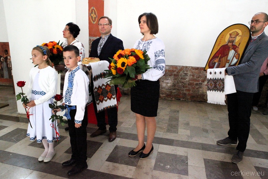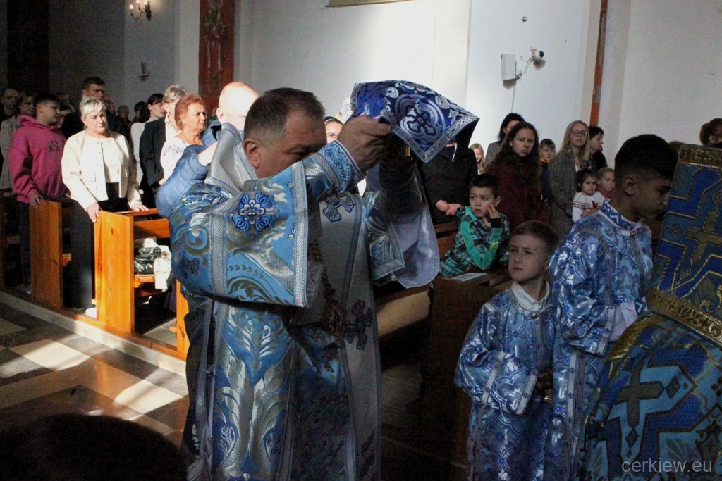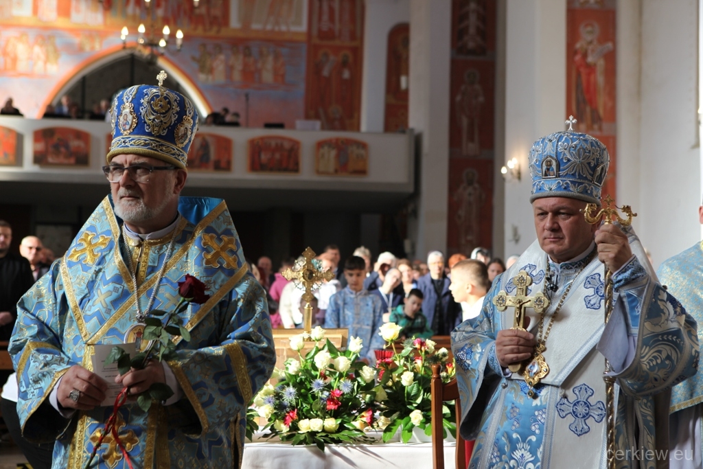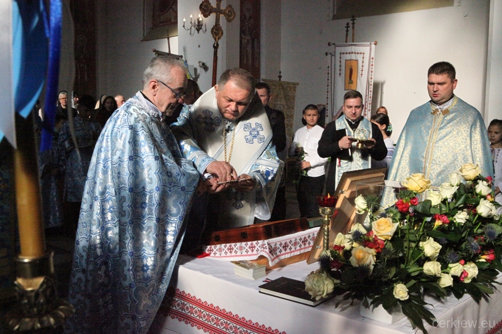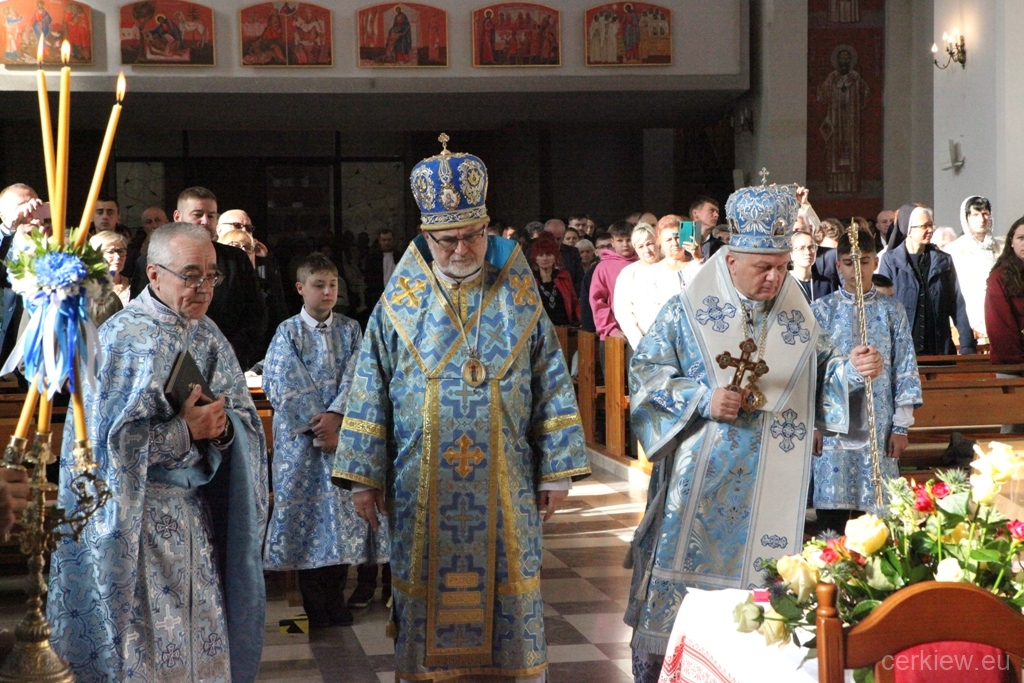 Урочисту літургію, у якій взяли участь численно прибулі віряни ґданської парафії, а також делегації від інших парафій, очолили Вроцлавсько-Кошалінський Владика кир Володимир Роман Ющак ЧСВВ та Ольштинсько-Ґданський Владика кир Аркадій Троханоський. Перед іконостасом храму владик хлібом (короваєм) і букетами квітів привітали, разом з парохом, о. митратом Йосифом Улицьким, делегації від усіх парафіян і релігійних організацій.