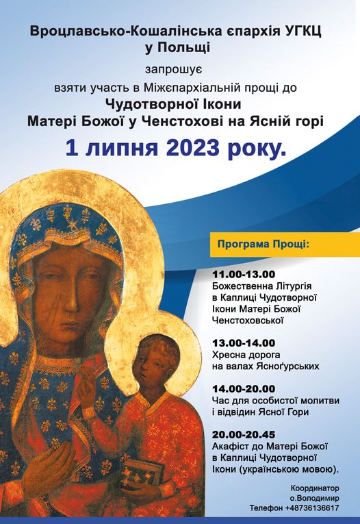 Міжєпархіяльна проща до Чудотворної Ікони Богородиці на Ясній горі у Ченстохові.