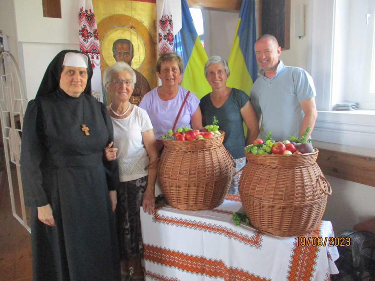 В на кінець Святої Літургії було освячено первоплоди які парафіяни принесли до храму, також як традиційно був приготований родинний кош із фруктами для усіх присутніх.