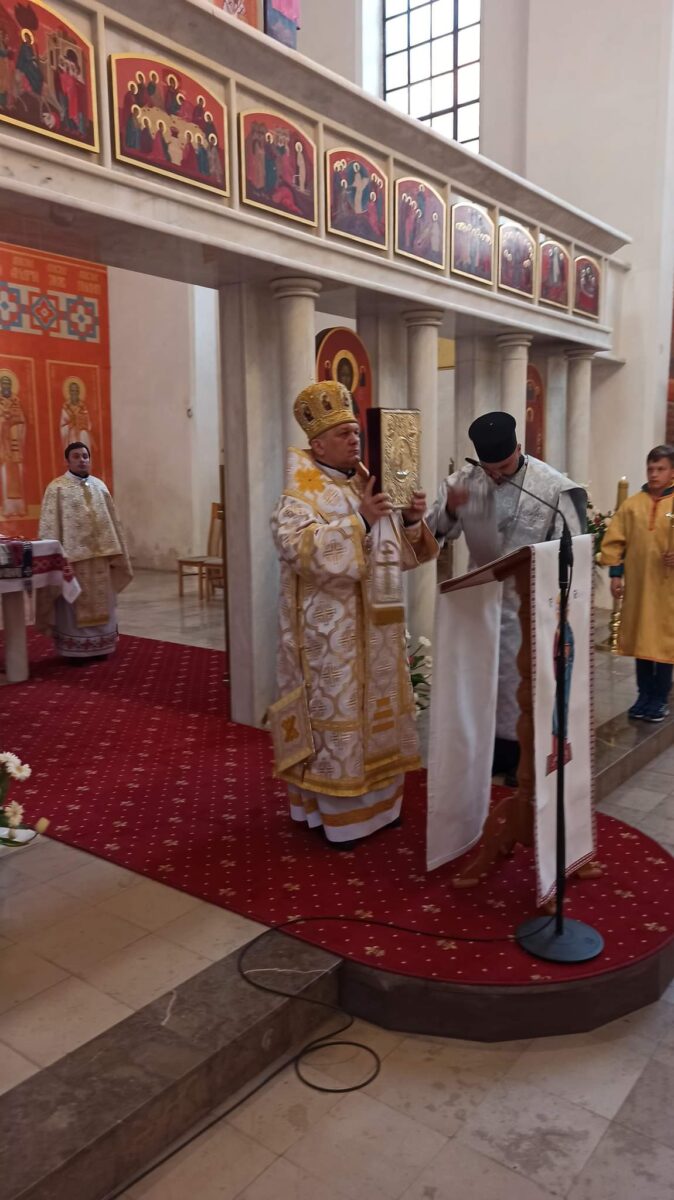 На завершення проповіді Владика Аркадій привітав усіх із світлим празником Воскресіння Христового: „Всіх вас вітаю та бажаю всього найкращого. Бажаю найперше усім нам миру, в наших серцях, наших родинах; Україні блакитного неба, щоби ніщо не літало над головами, щоби кожен український воїн повернувся до своєї родини, бо тоді радість буде повна. Бажаю багато відваги, мудрості, сили і здоров`я у цей складний час. Бажаю багато надії, віри в перемогу добра над злом, щоби Бог був присутній в житті кожного з нас. Щоби допомагав порядкувати наше життя. Щоби ми шанували одні одних. Бажаю, щоби з радістю пережити ці свята, бо Христос справді воскрес. Також і для українського народу і з українським народом.  Ці слова прошу також переказати всім, кого немає у церкві. Бажаю, щоби всі святкували свято свят дійсно по-Божому та щоб ми завжди перемагали з Воскреслим Христом.”