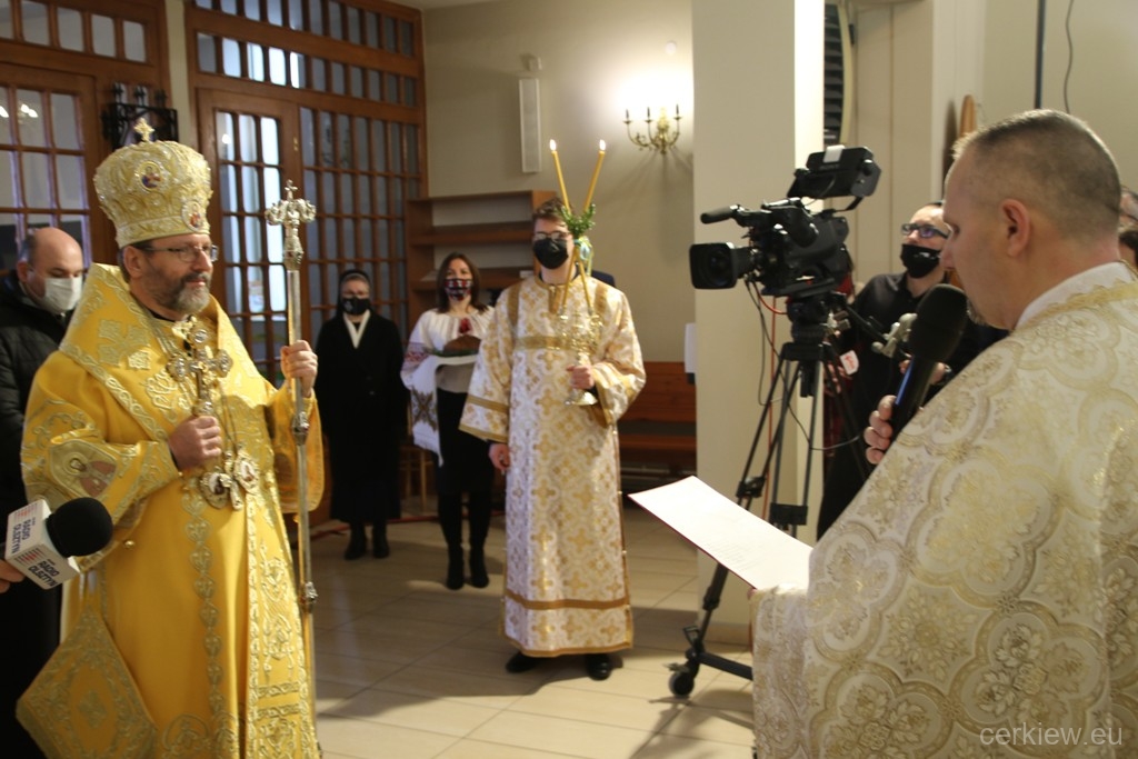 Блаженніший Святослав у проповіді того торжественного дня до учасників свята, між іншими, відзначив: «Тут, в Ольштині, ми переживаємо особливу історичну хвилину. Сьогодні ми були свідками потрійної радості Греко-Католицької Церкви у Польщі, яка є радістю усієї помісної Української Греко-Католицької Церкви як на рідних землях, так і розсіяних по всій земній кулі. Сьогодні ми святкуємо урочисте проголошення нової нашої Ольштинсько-Ґданської єпархії. Ми є учасниками єпископської хіротонії преосвященного владики Аркадія, а також будемо свідками введення на ново утворений престол ольштинсько-ґданських єпископів їхнього першого правлячого архиєрея. Три історичні події в одній, єдиній хвилі. Сьогодні під склепінням цієї ново проголошеної катедри, відповідно до нашої тисячолітньої традиції, ми багато раз співали потрійне «Аксіос», що означає «достойний». Дійсно так, «Аксіос», ти є достойний наш народе, наш Божий люде, на цій землі мати свою єпархію. Дорога до її утворення сповнена була дорогою мучеництва, слізьми переселенців і вигнанців. Неймовірними зусиллями протистояння комуністичним репресіям і муравлиної праці задля організації, тут на цих теренах, нашого духовного і культурного життя…».